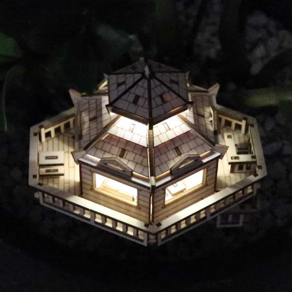 DIY wooden model kit with easy to follow instructions. Includes LED lights, acrylic stake (moisture resistant) and assembly tools.