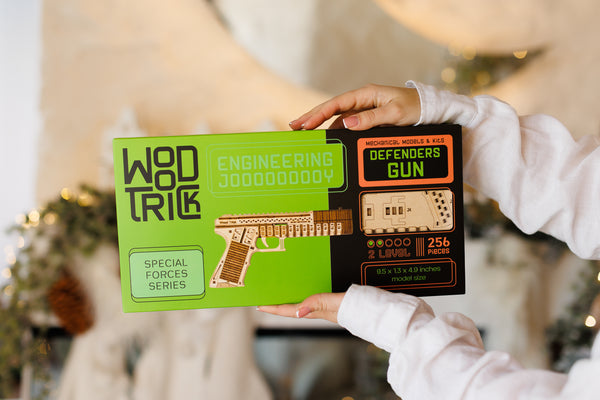 Op zoek naar een compact maar boeiend project? Het Defenders Gun bouwpakket is een houten pistool dat echt houten kogels kan afschieten. Dankzij het slimme ontwerp is het een leuk en veilig model om in elkaar te zetten en mee te spelen. Ideaal om schietwedstrijdjes mee te houden.