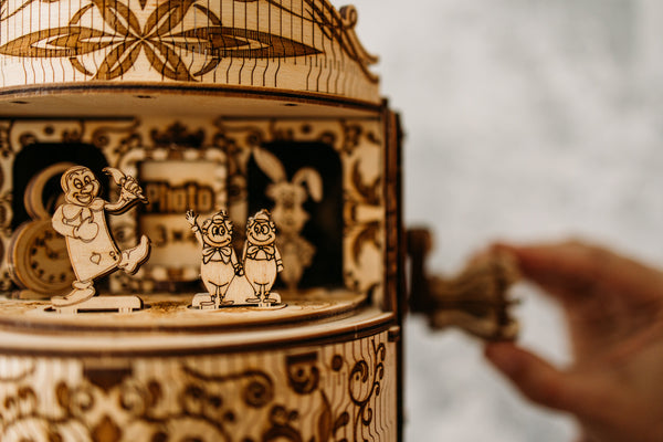 Een betoverend houten bouwpakket dat perfect is voor wie begint met modelbouw voor volwassenen. Deze creatieve mechanische puzzel is niet alleen leuk om te bouwen, maar ook om mee te spelen.