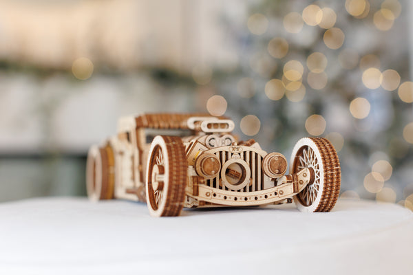 Een fantastisch technisch bouwpakket voor liefhebbers van klassieke auto's en mechanische modelbouw. Deze houten puzzel is een plezier om te monteren en een stoer decoratiestuk.