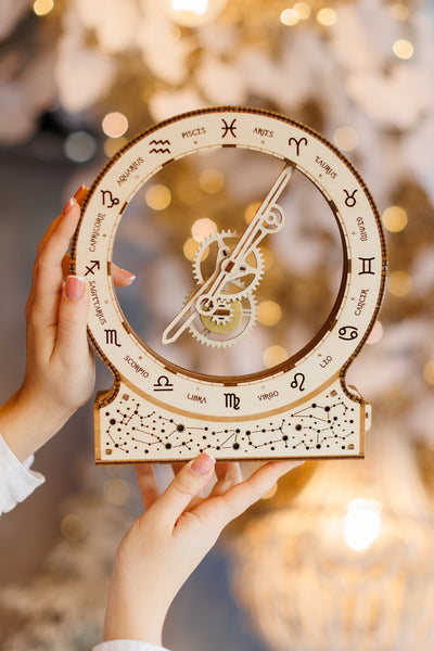 Geef tijd een kosmische dimensie met de Kinetic Clock: Zodiac. Dit astronomisch bouwpakket is meer dan een klok; het is een kunstwerk met een fascinerend thema. Bouw het complexe raderwerk en creëer een functionele klok omringd door de tekens van de dierenriem.