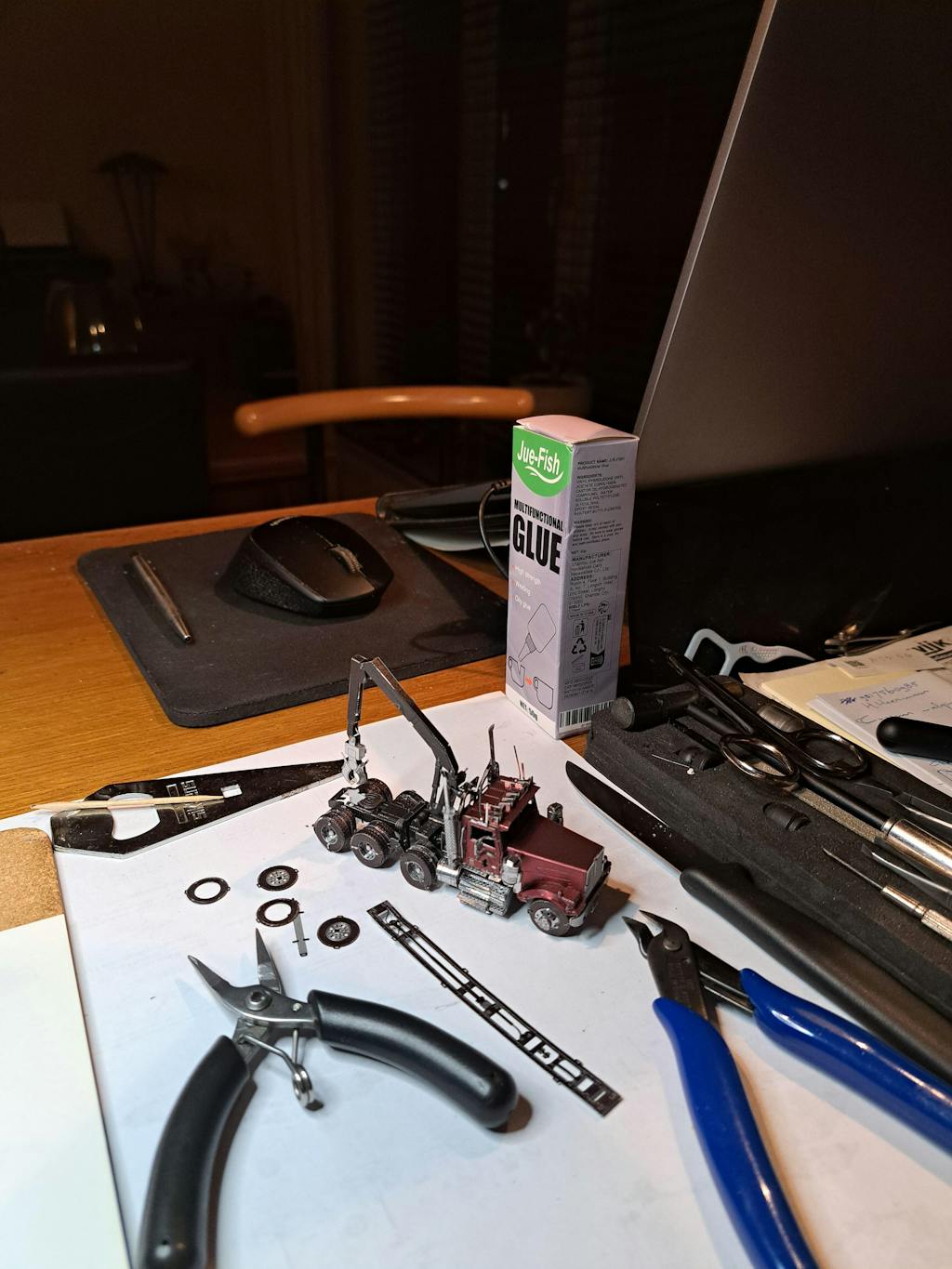 Een indrukwekkend en gedetailleerd model voor een verrassend kleine prijs: het Houttruck metalen bouwpakket. Deze robuuste vrachtwagen, ontworpen voor het transport van boomstammen, is een prachtig stukje techniek in miniatuur.